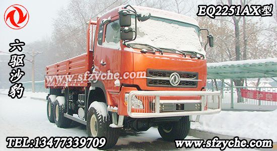東風(fēng)牌EQ2251AX型沙漠越野車配置:采用東風(fēng)新款D310平頂單臥駕駛室,發(fā)動(dòng)機(jī):康明斯375馬力國(guó)四發(fā)動(dòng)機(jī) 直列增壓中冷六缸水冷柴油機(jī) ISLe375 40;北方奔馳同步器型9擋箱 9T-160 Φ430mm,膜片彈簧拉式離合器,7T前橋,10T 重慶大江雙級(jí)減速雙后橋 14.00-20輪胎 (選裝20-20 沙漠胎)軸距3800+1400 鋼板彈簧片數(shù)9/10,油箱350L,貨箱尺寸:5720×2294×800mm,整車外形尺寸:8470×2500,2700×3520,動(dòng)力轉(zhuǎn)向。如需了解更多東風(fēng)六驅(qū)沙漠車圖片,東風(fēng)六驅(qū)沙漠車價(jià)格,東風(fēng)六驅(qū)沙漠車參數(shù),請(qǐng)立即撥打銷售熱線:13477339709 李經(jīng)理 0722-7053060 業(yè)務(wù)QQ:530233927,東風(fēng)越野卡車網(wǎng)址:m.hrbcyh.com