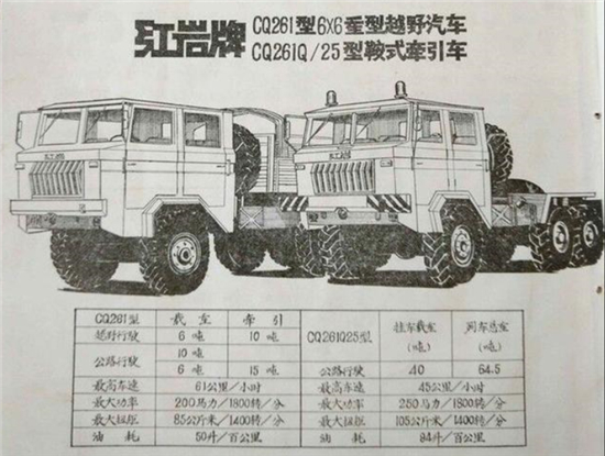 10噸級紅巖CQ261型6×6重型軍用越野汽車和紅巖CQ261Q/25型6x6牽引車發(fā)展歷程。