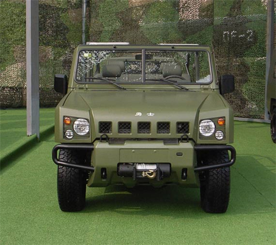 2007年8月2日,北汽控股公司在位于北京市順義區(qū)的北京汽車(chē)制造廠有限公司隆重舉行慶祝建軍80周年暨北京·勇士下線儀式。北汽勇士BJ2022型4×4軍用越野車(chē)自2007年列裝部隊(duì)以來(lái),“勇士”越野車(chē)作為我軍第二代軍用指揮車(chē),常年活躍在演訓(xùn)場(chǎng)上和邊防線上。2008年、2009年北汽勇士軍用車(chē)參加并圓滿(mǎn)完成汶川地震搶險(xiǎn),打擊暴恐勢(shì)力等多次重要軍事行動(dòng)!坝率俊笔怯杀本┢(chē)制造廠有限公司自主開(kāi)發(fā)的,擁有完全自主知識(shí)產(chǎn)權(quán)的中國(guó)21世紀(jì)0.5噸/0.75噸級(jí)越野車(chē)!坝率俊蓖獠吭煨褪窃谘芯苛藲W、美、日三大流派越野車(chē)造型發(fā)展趨勢(shì)的基礎(chǔ)上,結(jié)合中國(guó)文化特色和中國(guó)越野車(chē)的特點(diǎn)而設(shè)計(jì)的,具有原創(chuàng)性。