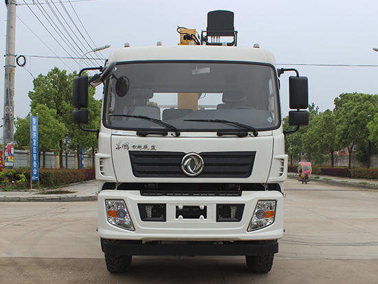 2. 采用徐工5噸折臂式隨車吊,SQZ105型徐工原廠吊機(jī),最大起重質(zhì)量5噸,三節(jié)臂,舉升高度11米,工作半徑8米,全液壓,全回轉(zhuǎn),車廂尺寸4.25米,遠(yuǎn)程油門控制,下操作。