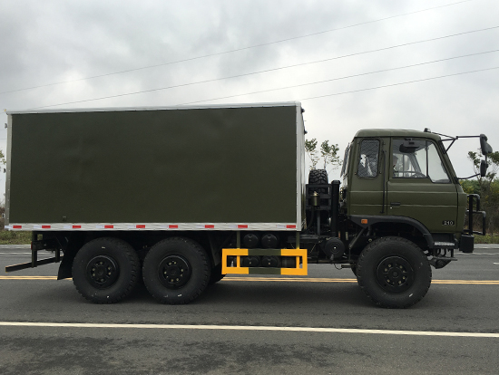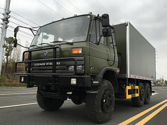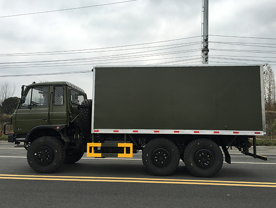 相關(guān)車型東風六驅(qū)越野廂式車采用東風越野卡車底盤DFS5160GLJ2 ,東風153平頭一排半駕駛室,6*6驅(qū)動,康明斯210馬力,韶齒6檔變速箱,斷氣彈簧制動,貫通式中后驅(qū)動橋,12.5R20越野胎,軸距 3500+1250mm,加厚雙層大梁,帶軍用保險杠。六驅(qū)越野廂式車,廂體根據(jù)用戶需要形式多樣,選裝多樣,可以選裝空調(diào)、側(cè)門、側(cè)窗、發(fā)電機、裙邊結(jié)構(gòu)等.
