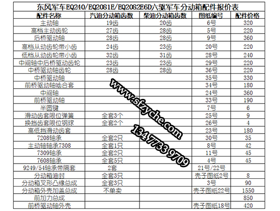 東風(fēng)軍車EQ240/EQ2081E/EQ2082E6D六驅(qū)軍車分動(dòng)箱配件報(bào)價(jià)表